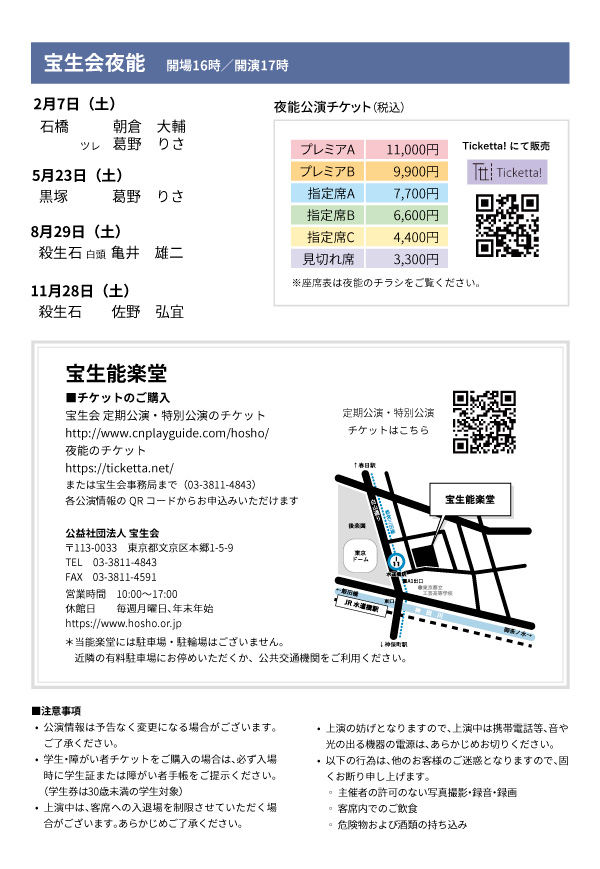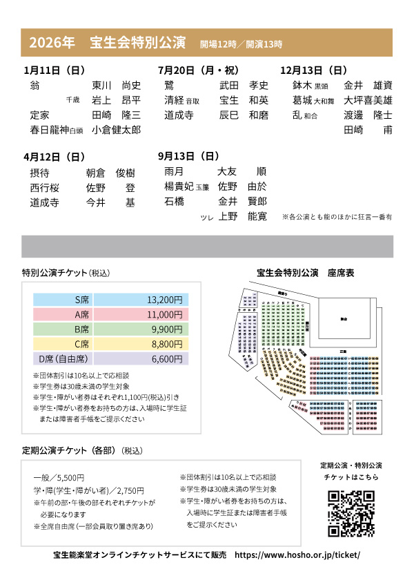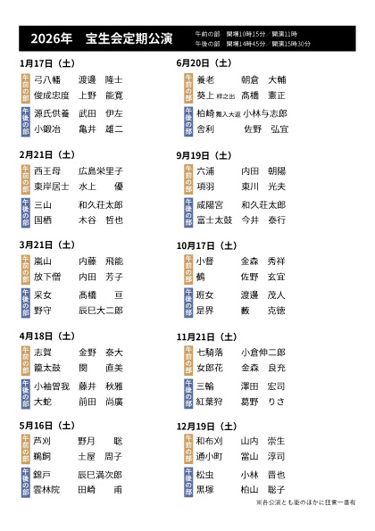 2026年 宝生会主催公演 年間番組のお知らせ(更新あり)