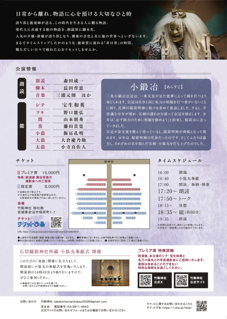 竹駒神社 午歳御縁年記念特別公演 夜能『小鍛冶』