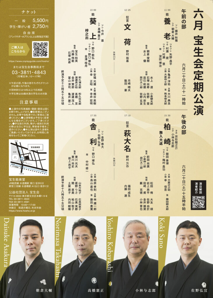 6月20日(土)宝生会定期公演◇午前の部◇ 11時開演(10時15分開場)